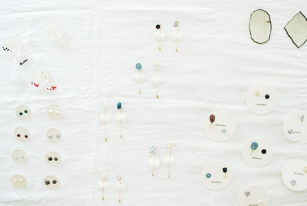 ガラス作家のオカベマキコさんよりアクセサリーを、