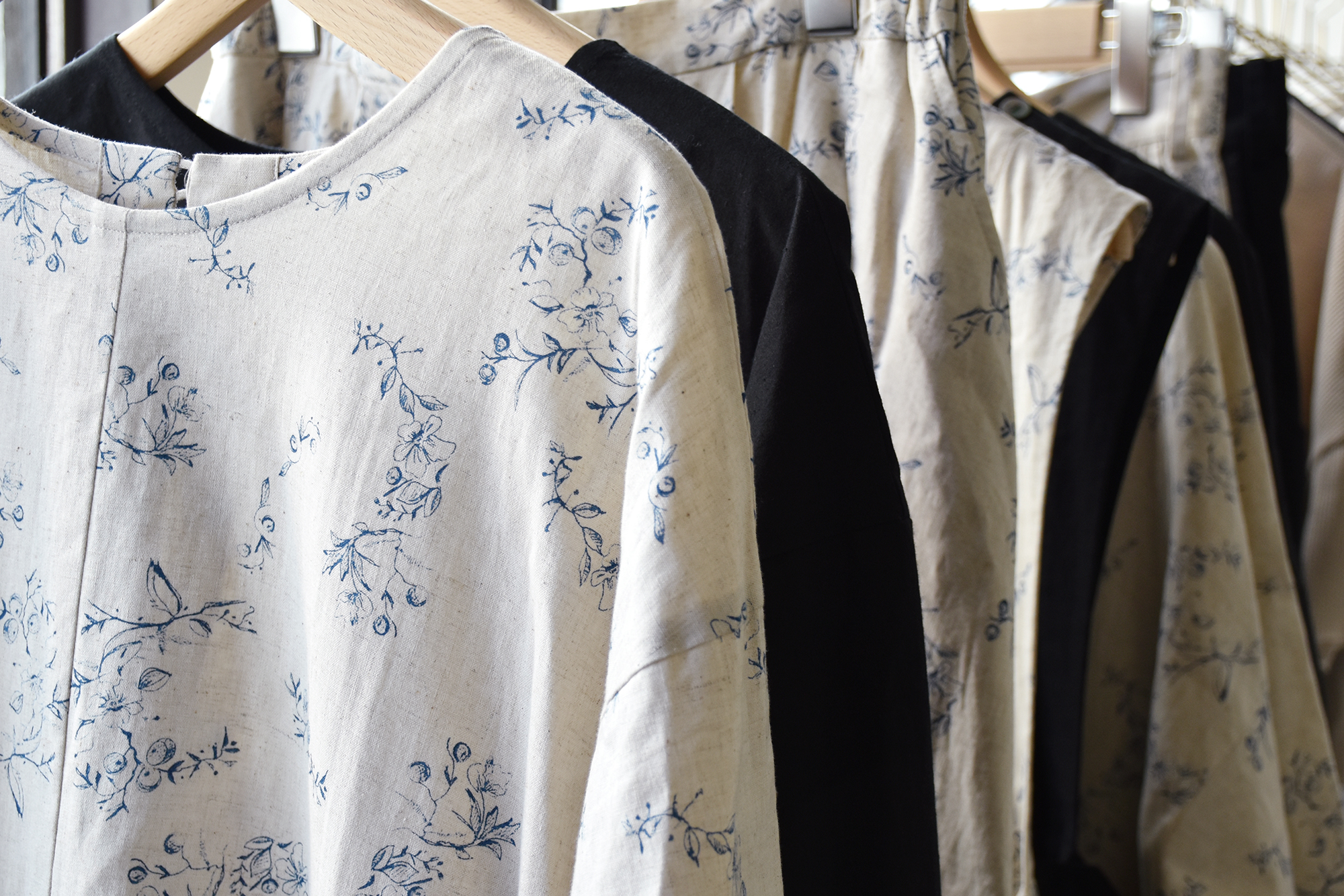 オリジナルのテキスタイル、やわらかでやさしい素材、春夏の軽やかさをたっぷりと含んだお洋服が勢揃いました。