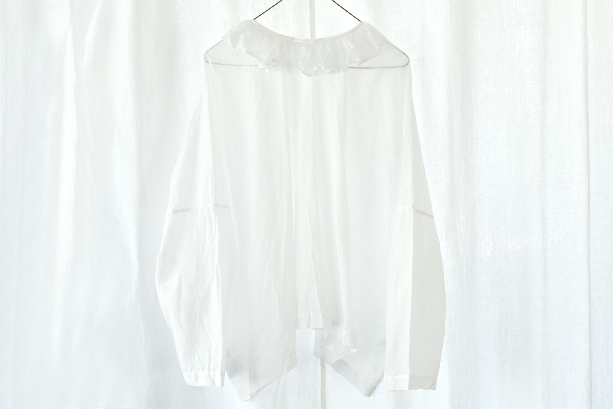 透け感が儚い真っ白な薄コットン素材で仕立てられたトップス。