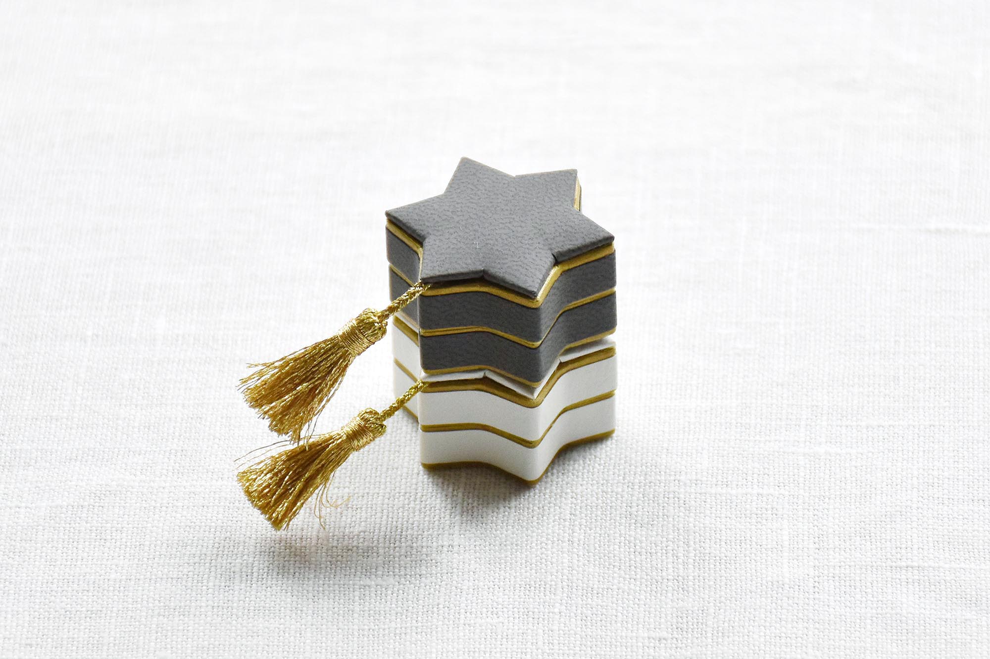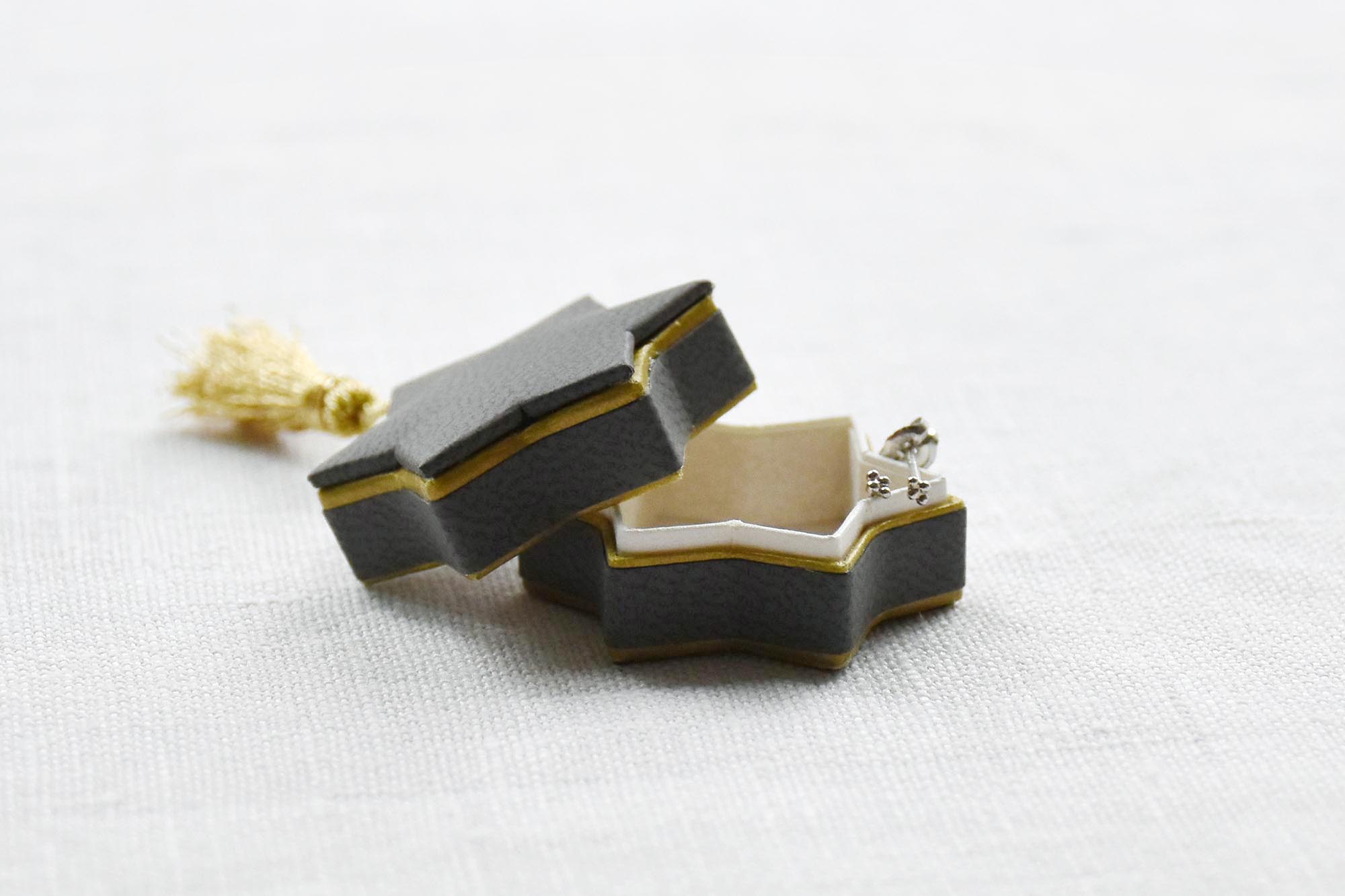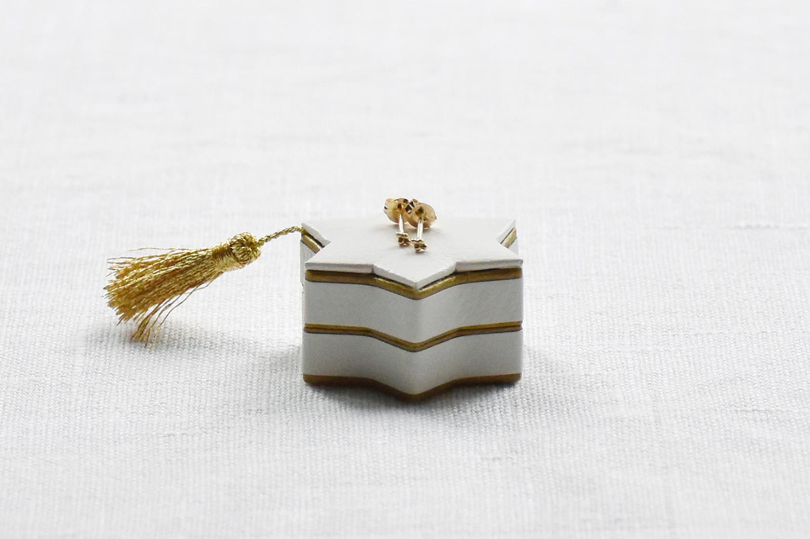 3cmほどのちいさなちいさな箱には 流れ星の尾を模したタッセルがあしらわれています。