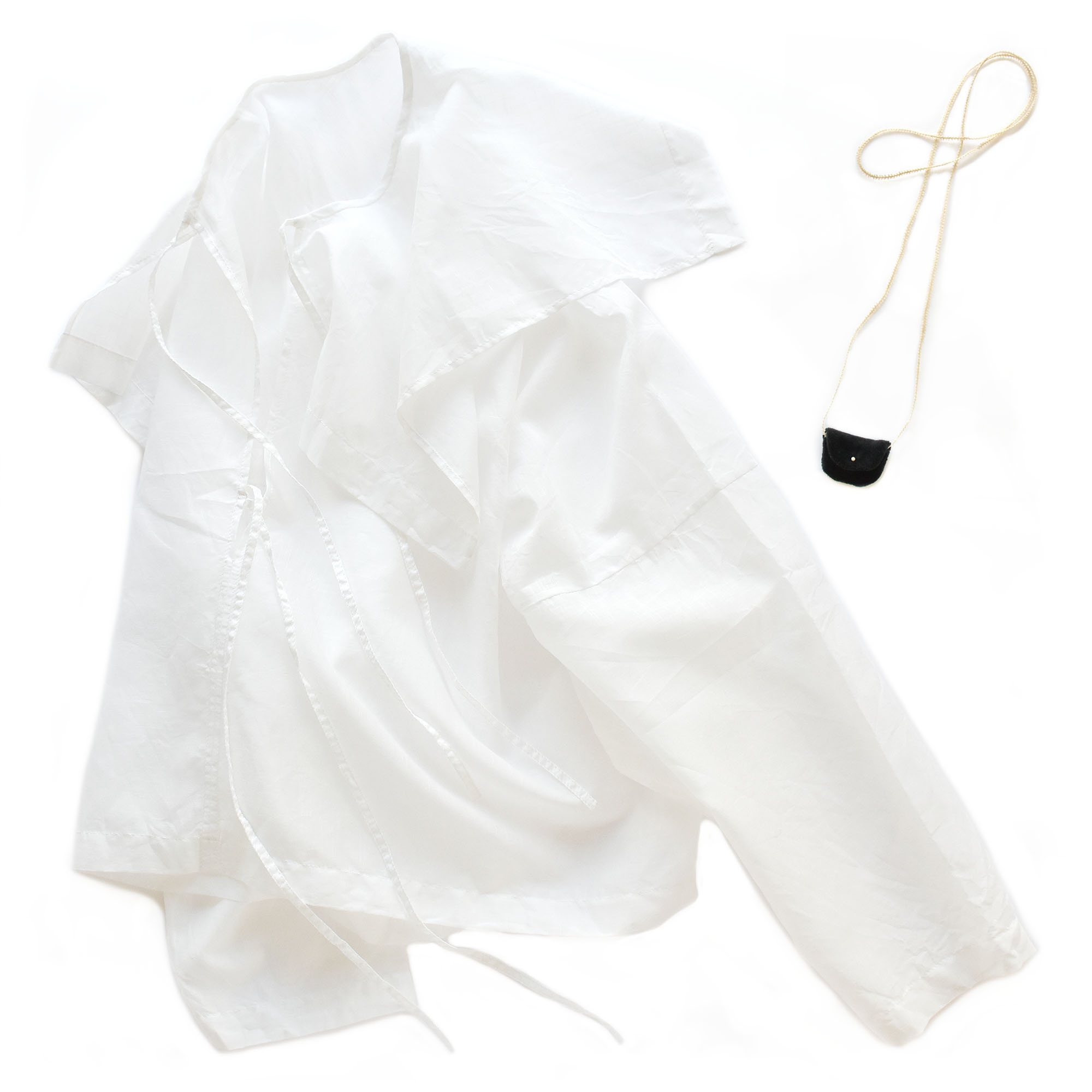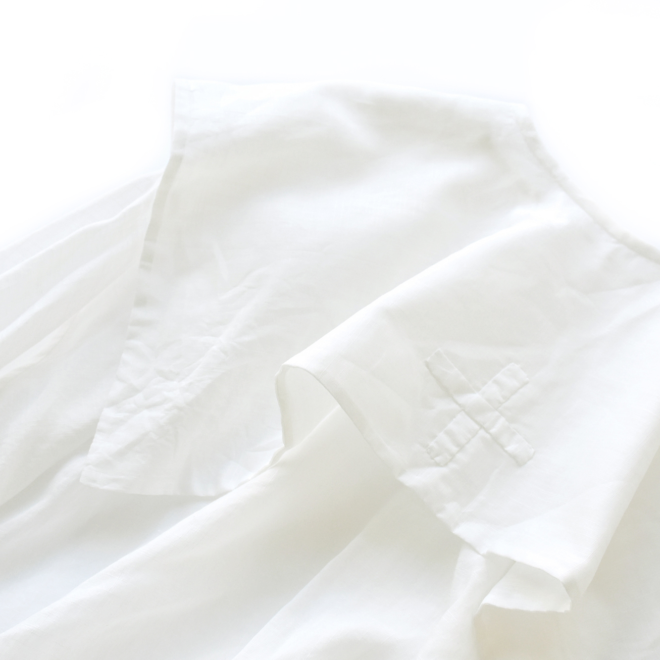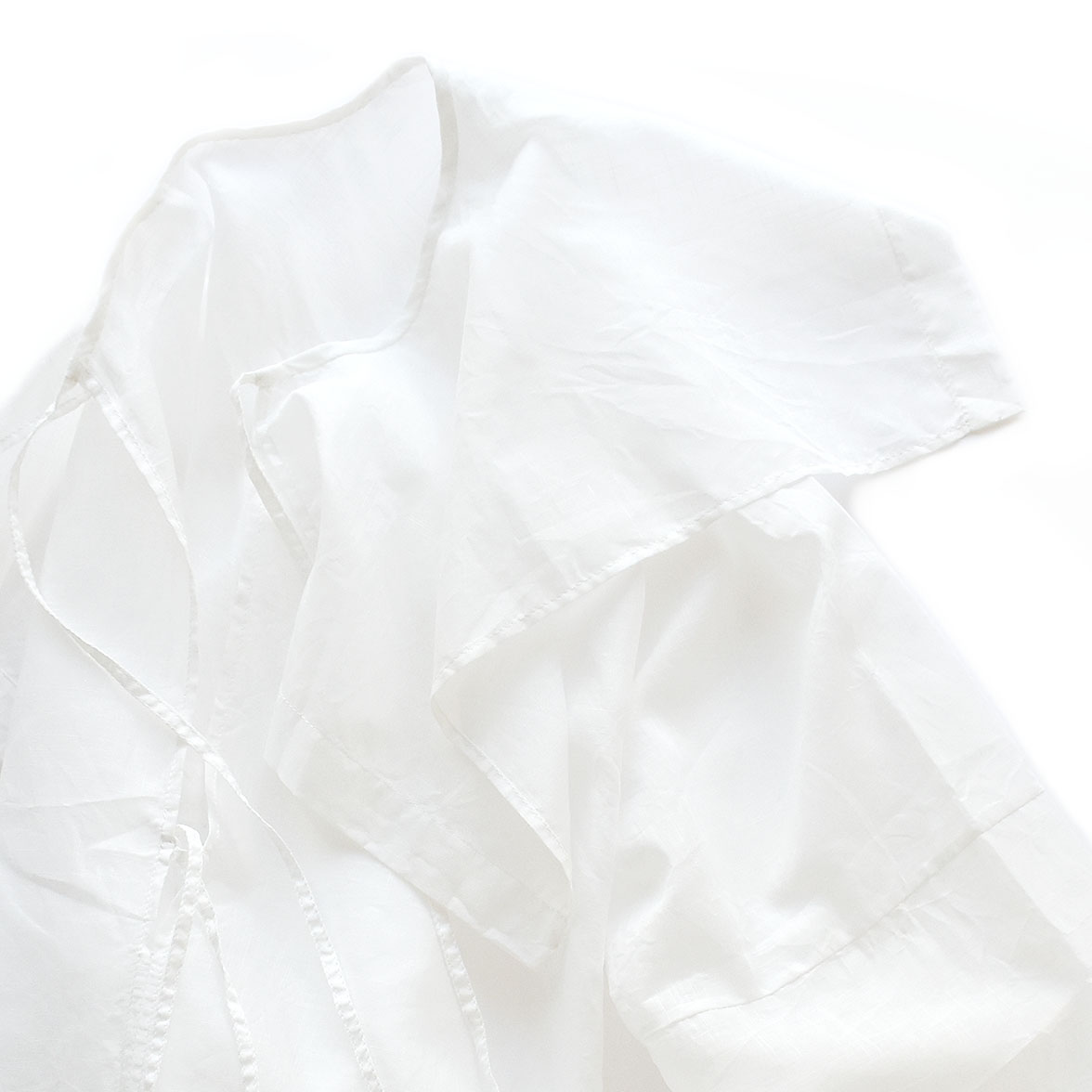 生地は定番のコットンラミー素材。薄く透け感のあるアンティークブラウスのような佇まいの素材感です。