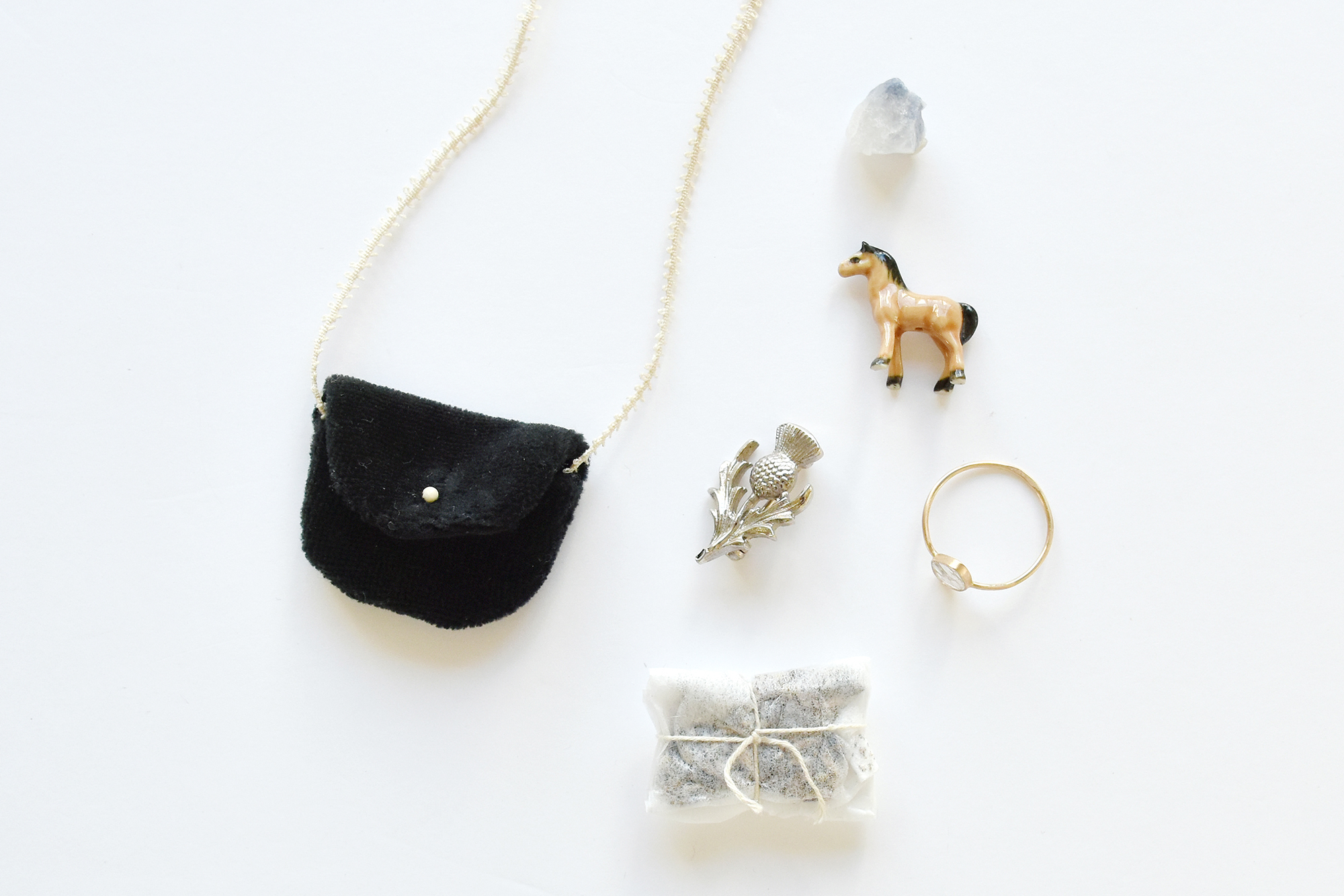 好きな色カタチの鉱石、古いフェーヴ、お気に入りのブローチ、大切なリング、などなど。