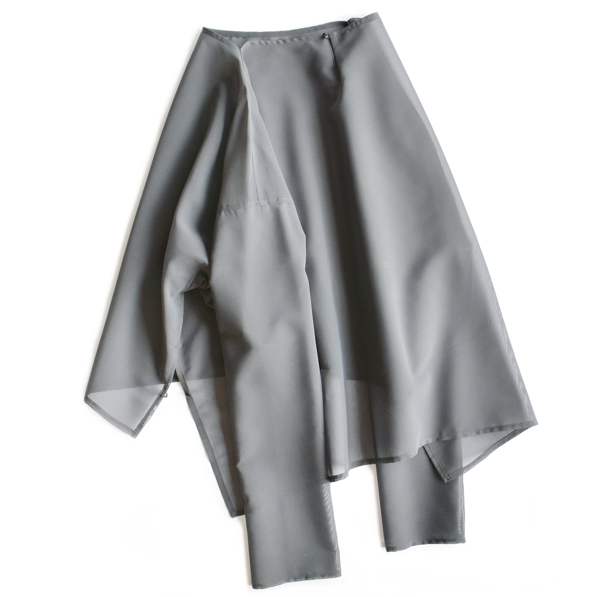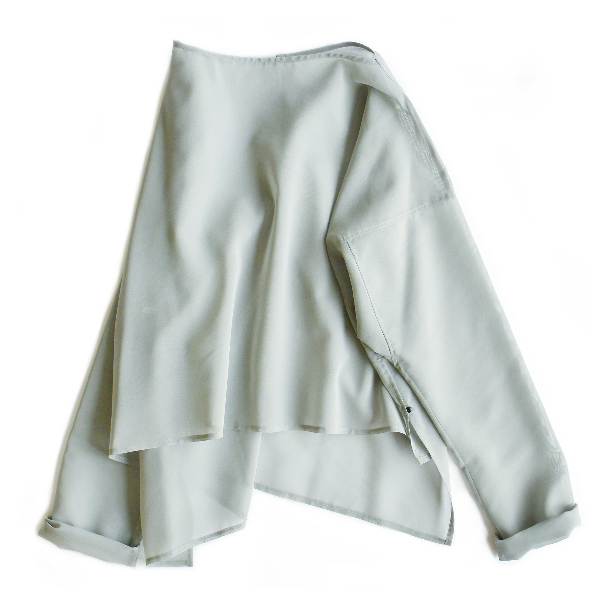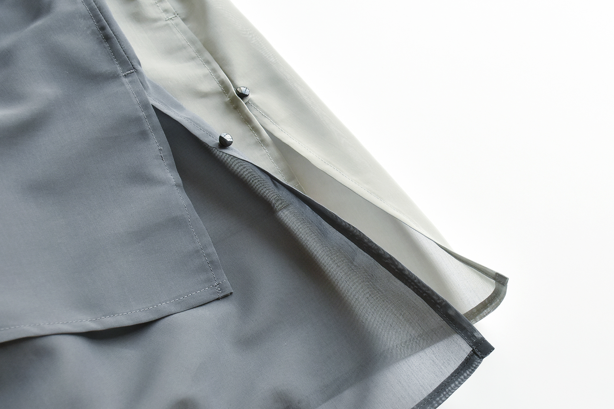 透け感のあるオーガンジー素材は柔らかすぎず適度なハリ感があるので、着たときにふわりと体と洋服の間に空間をつくってくれるのがポイント。シワにもなりにくい素材です。