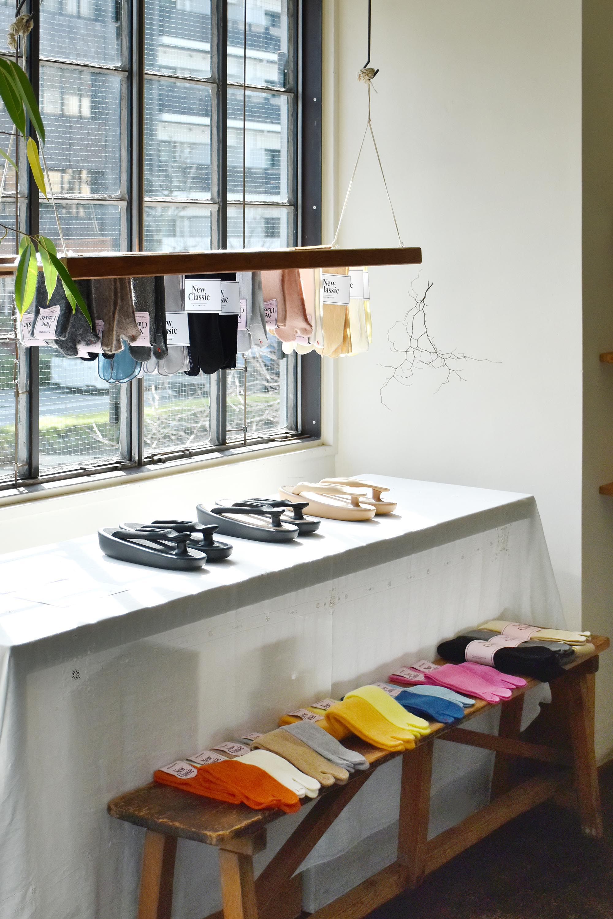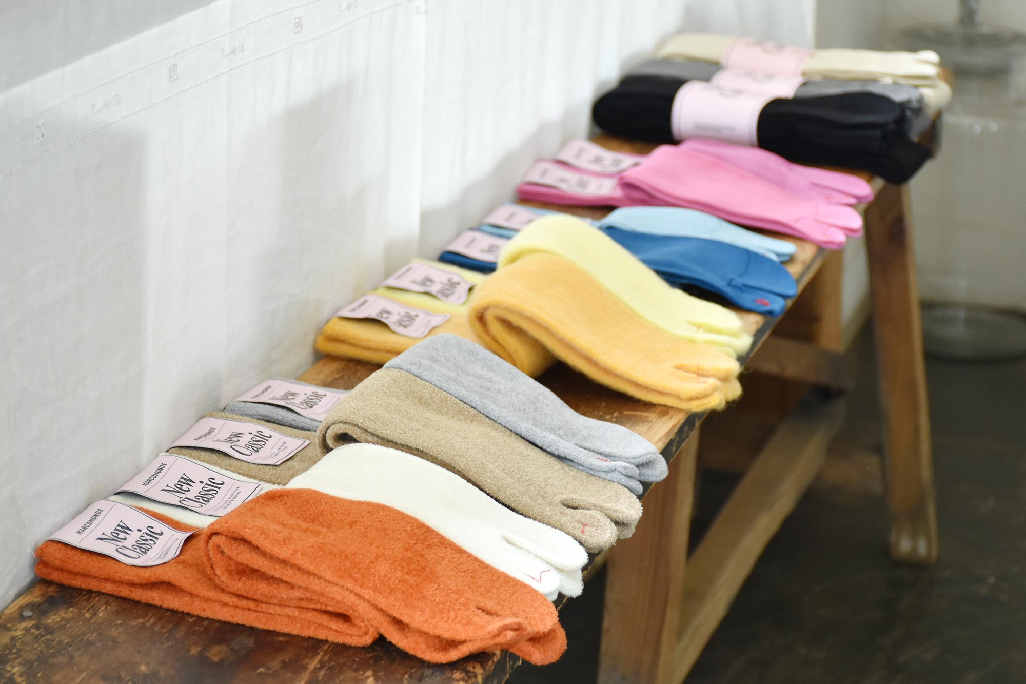 サンダルに合わせて履けるタビソックスは MARCOMONDEさんよりさまざまご用意いただいており、すぐにお持ち帰りいただけます。