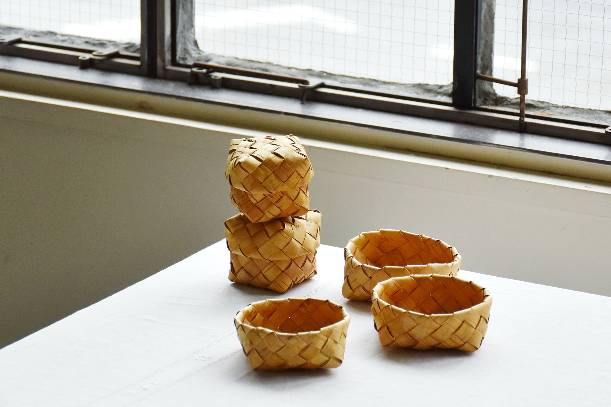 仕上がってきたちいさなかごはしっとりすべすべしていて、ふっくらとやわらかで、古いものとはまた違った趣。