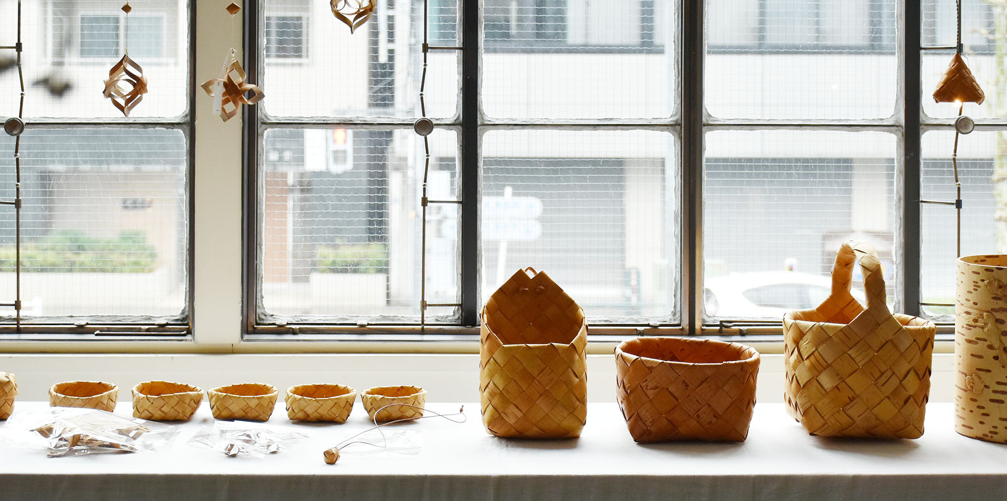 北海道美瑛でお店を営み、自らの手で採取した白樺樹皮で作品を生み出す スイノカゴ さん。