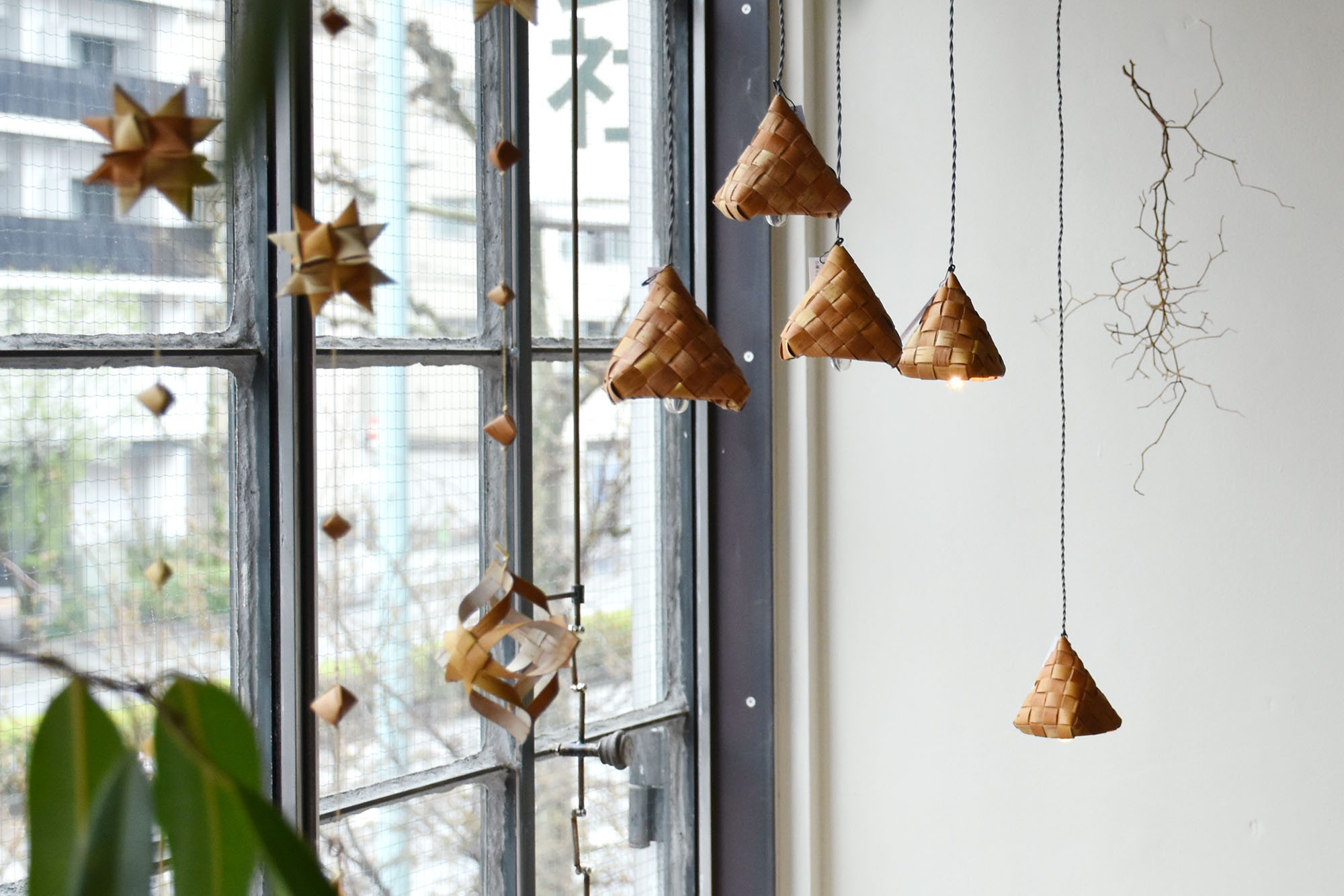 また、スイノカゴさんと岐阜のユーカリさんのコラボアイテム、ちいさな三角屋根のようなランプもお届けいただきました。