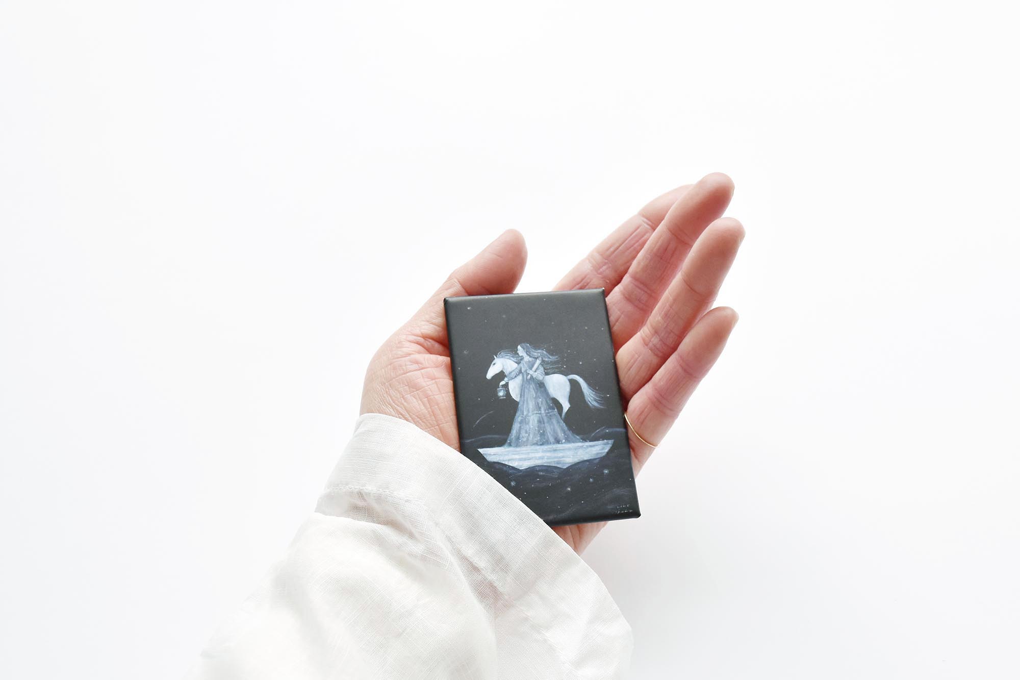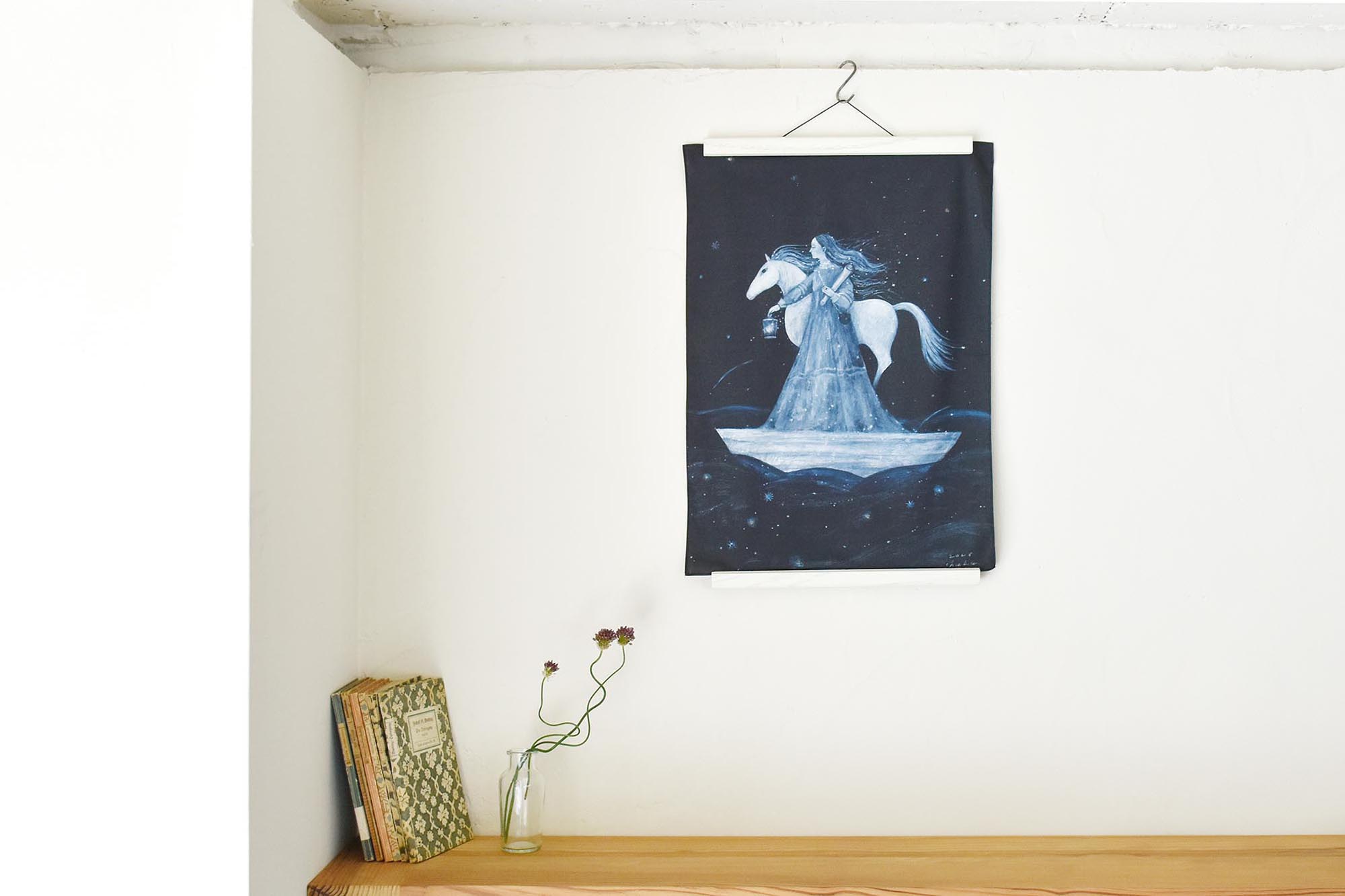 西淑さんの絵をご自宅で手軽に飾っていただけ、ハンカチとしても携帯できる布製のミニタペストリー/ハンカチ。