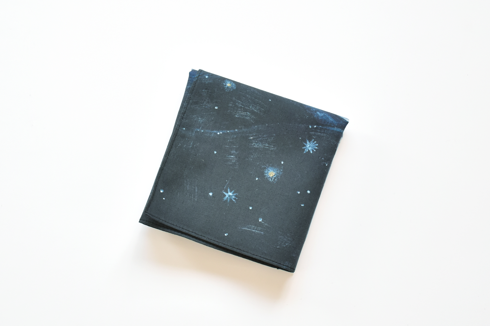 好きな柄の部分を見せるように折りたたんでハンカチに。