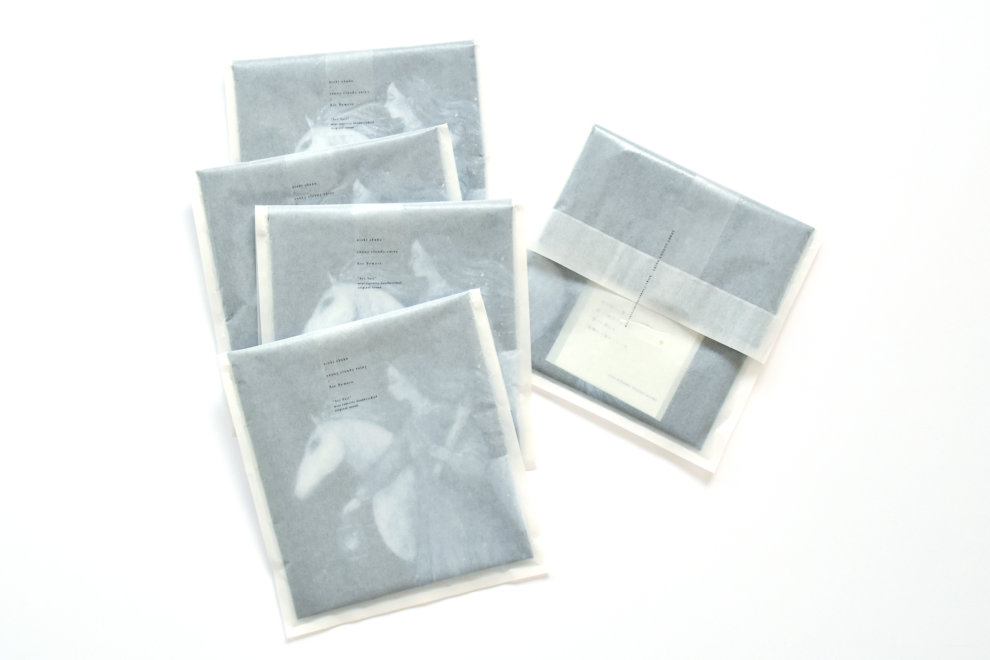 販売は ミニタペストリー/ハンカチとヴァイオリニストのRie Nemotoさんにご制作いただいたオリジナル音楽のダウンロードのご案内がセットになっています。