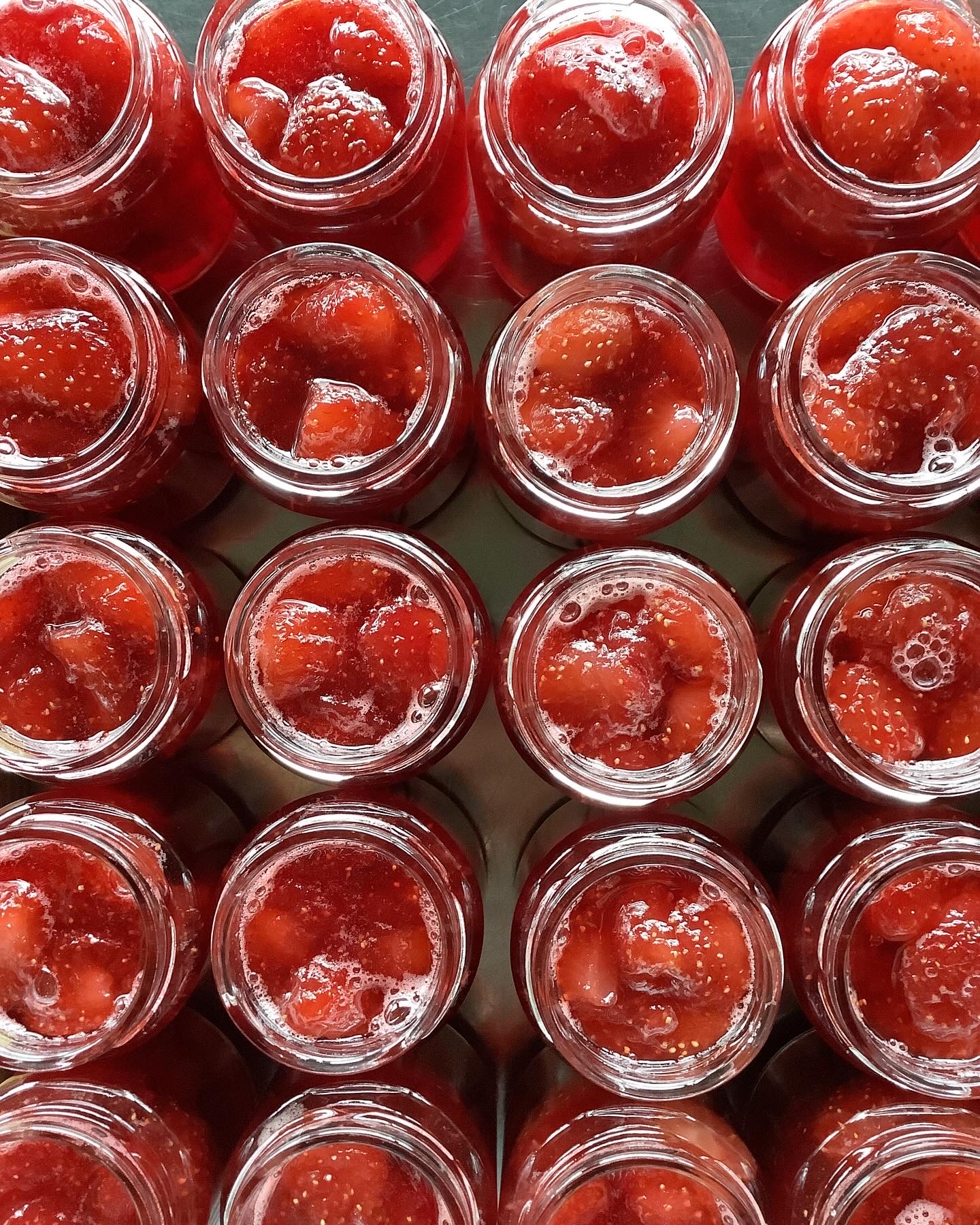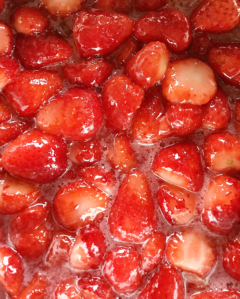 製造過程を眺めているだけでも、いちごの美味しい味わいがじゅわっと口のなかに広がっていくよう。