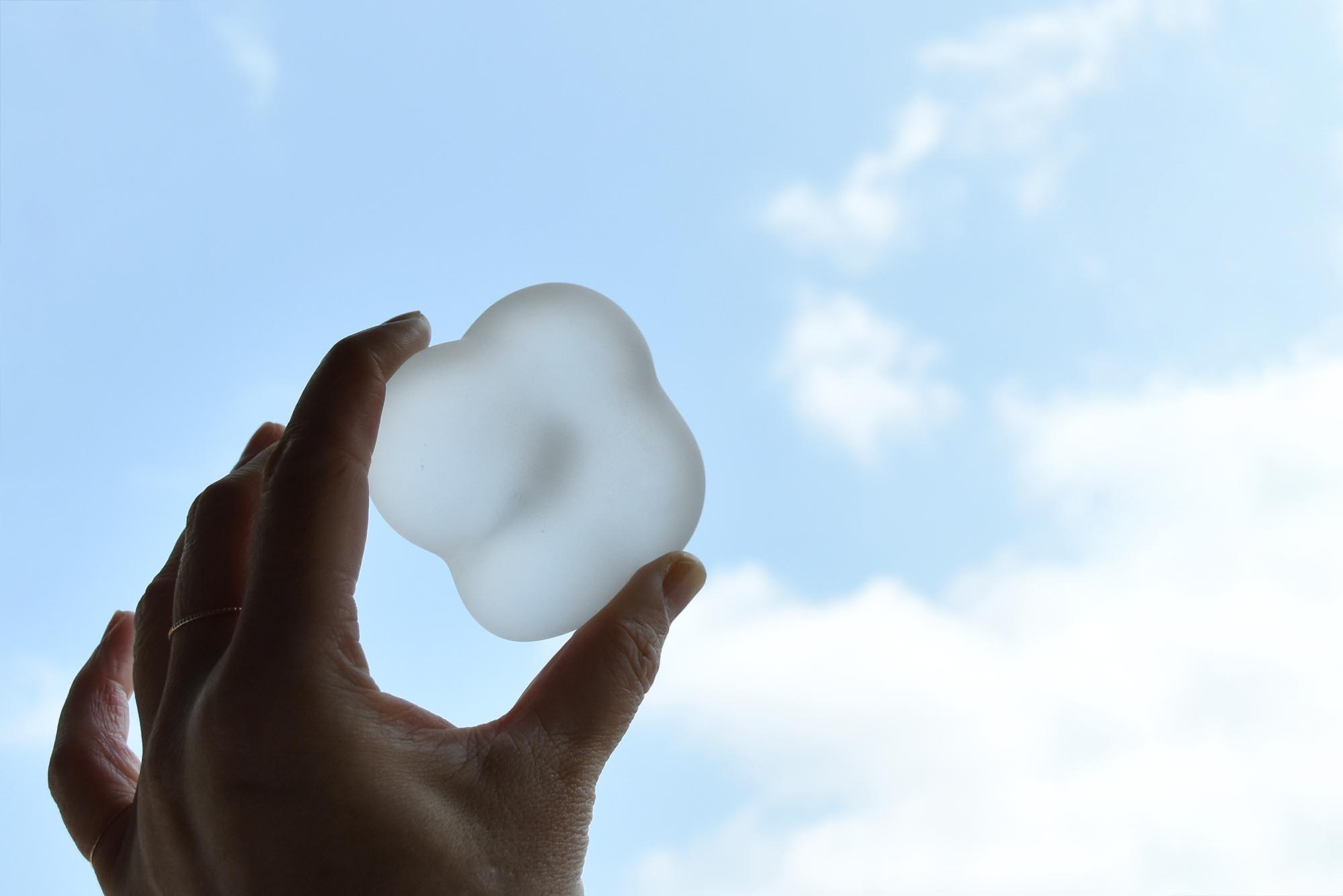 ふわふわと軽そうな見た目だけれど、ガラス素材なのでしっかり安定感のある重さ。