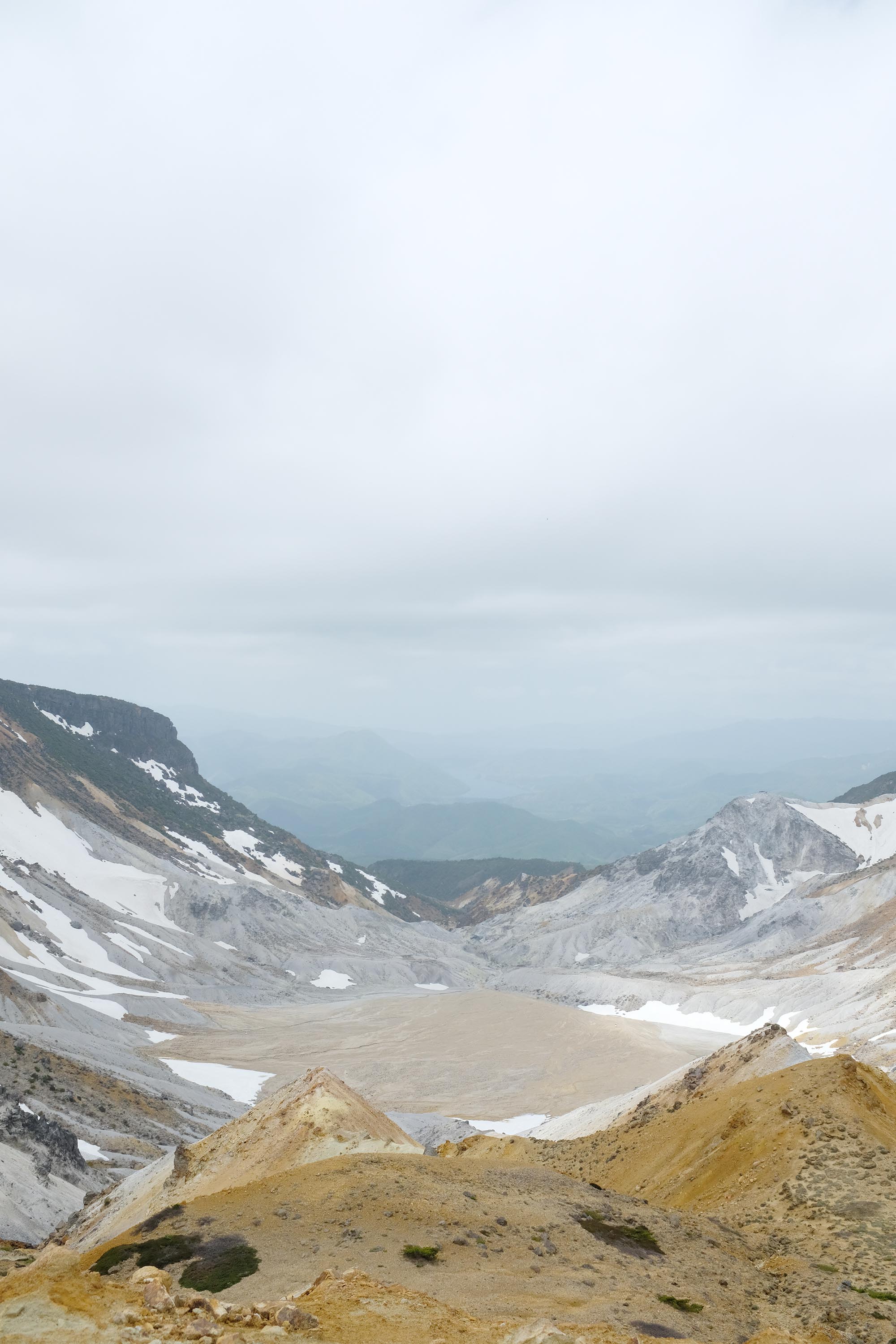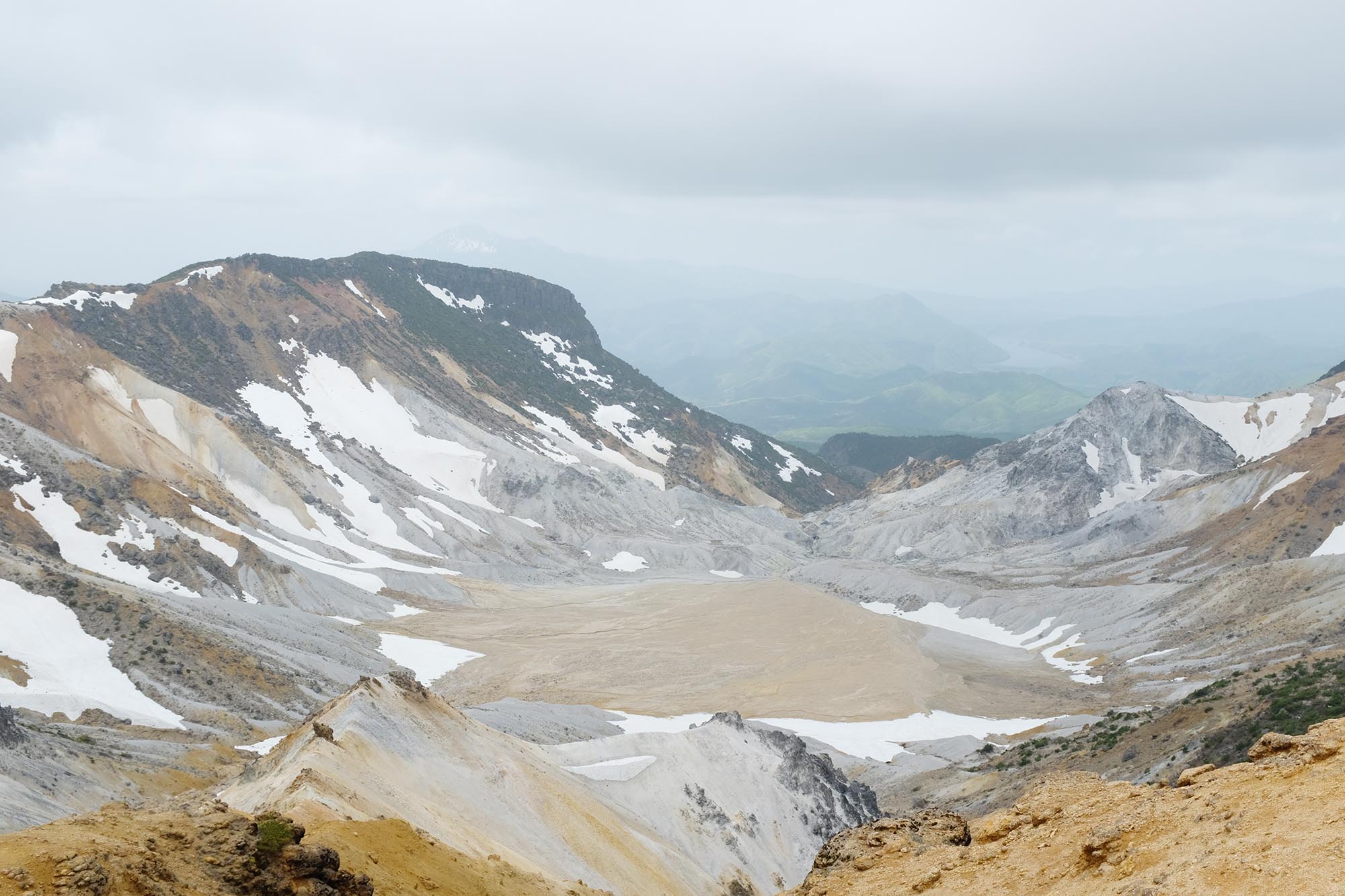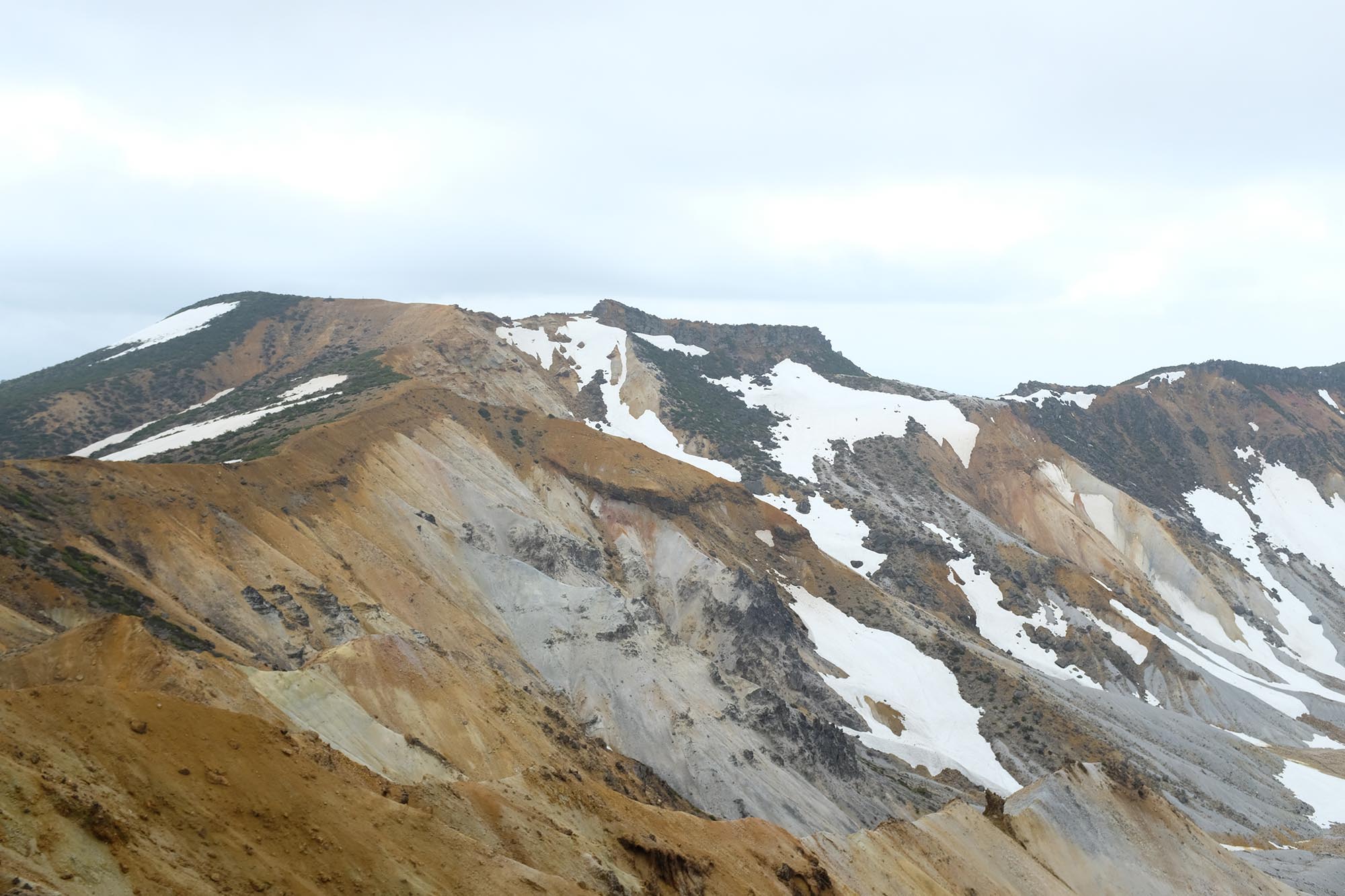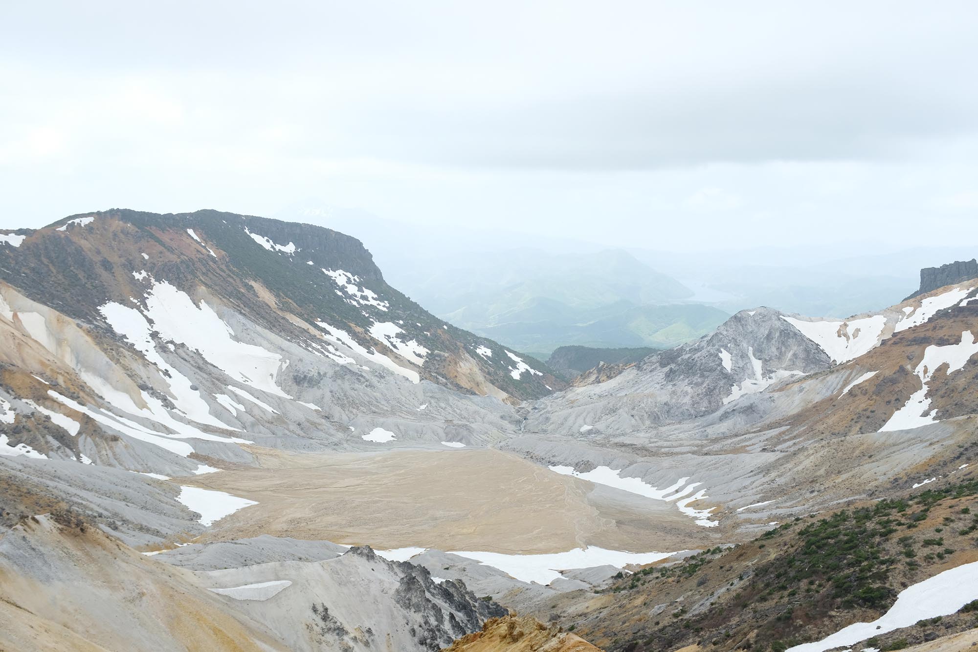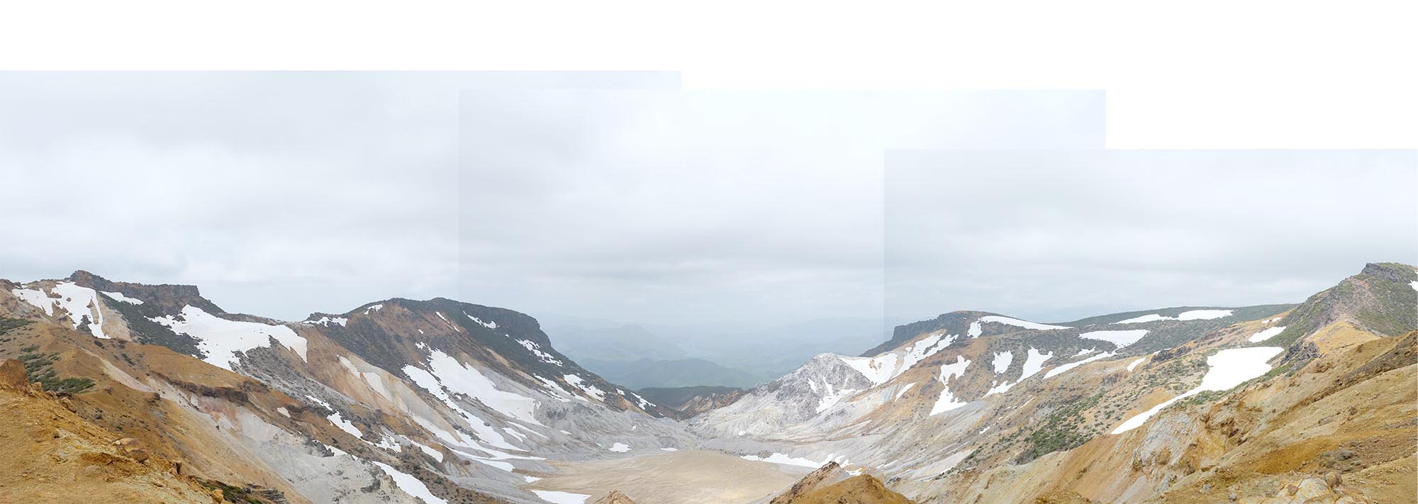 少しずつ姿を現してくる沼ノ平火口の風景。