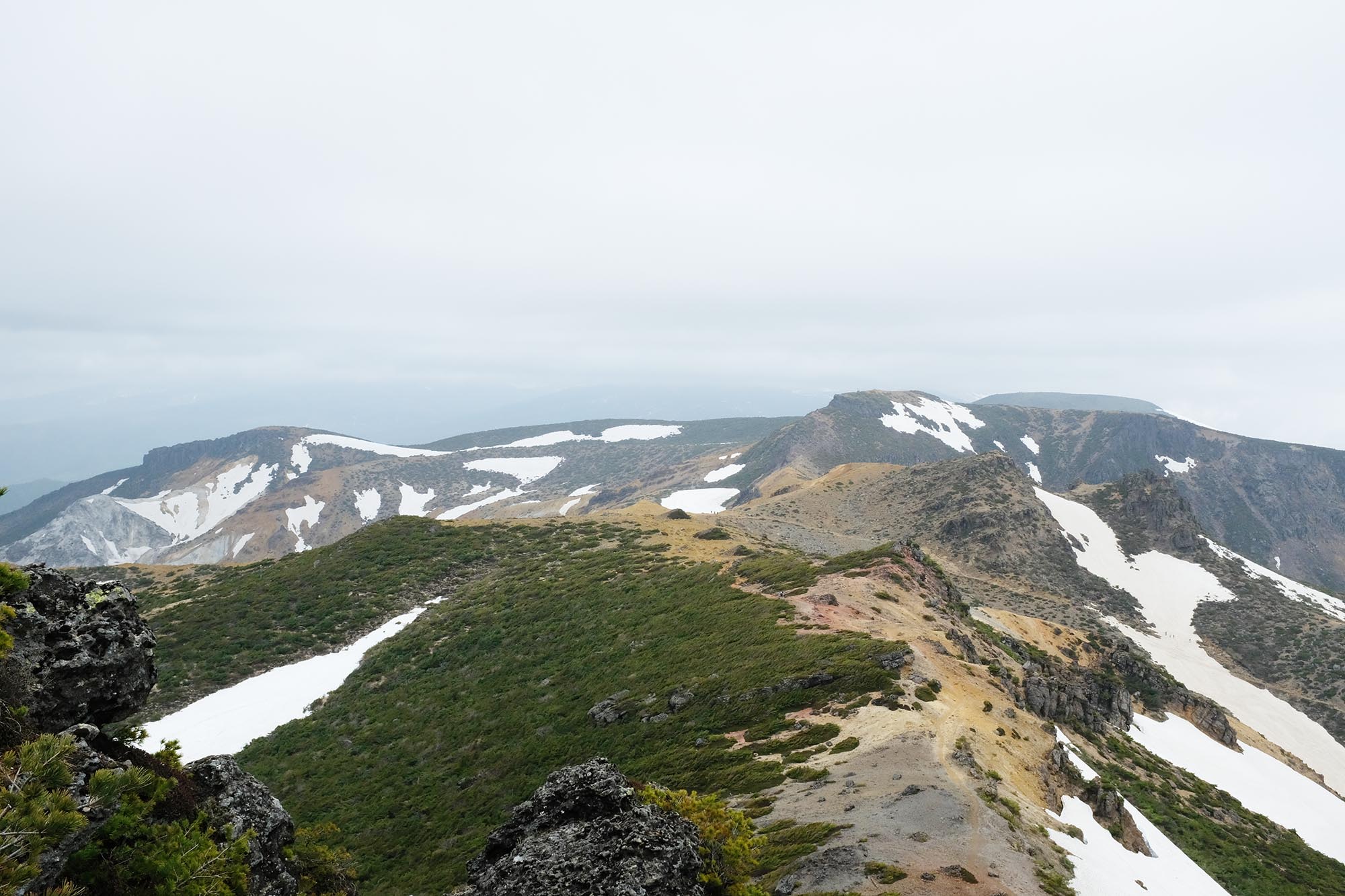 そこから山の稜線を歩き、強風に吹き飛ばされそうになりながら 牛ノ背、馬ノ背を通り鉄山を目指す。