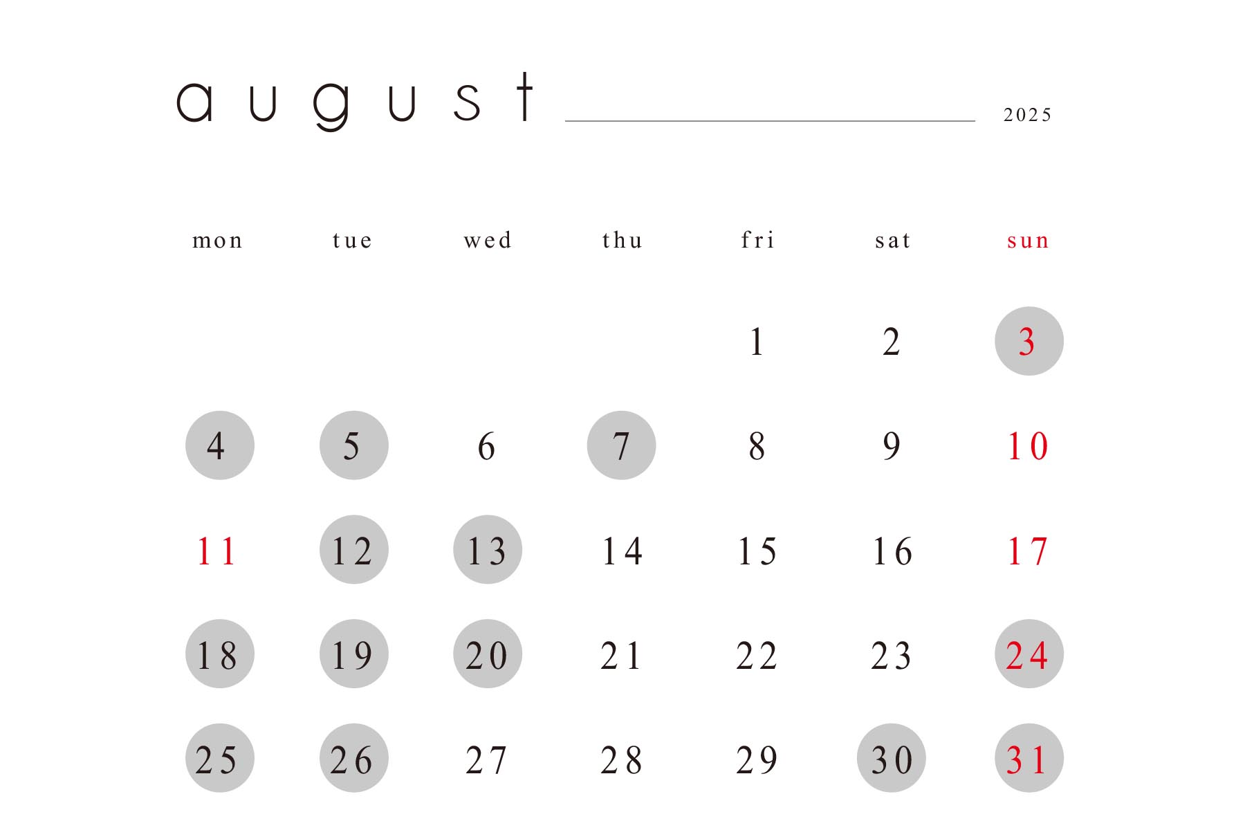 8月のオープンカレンダー