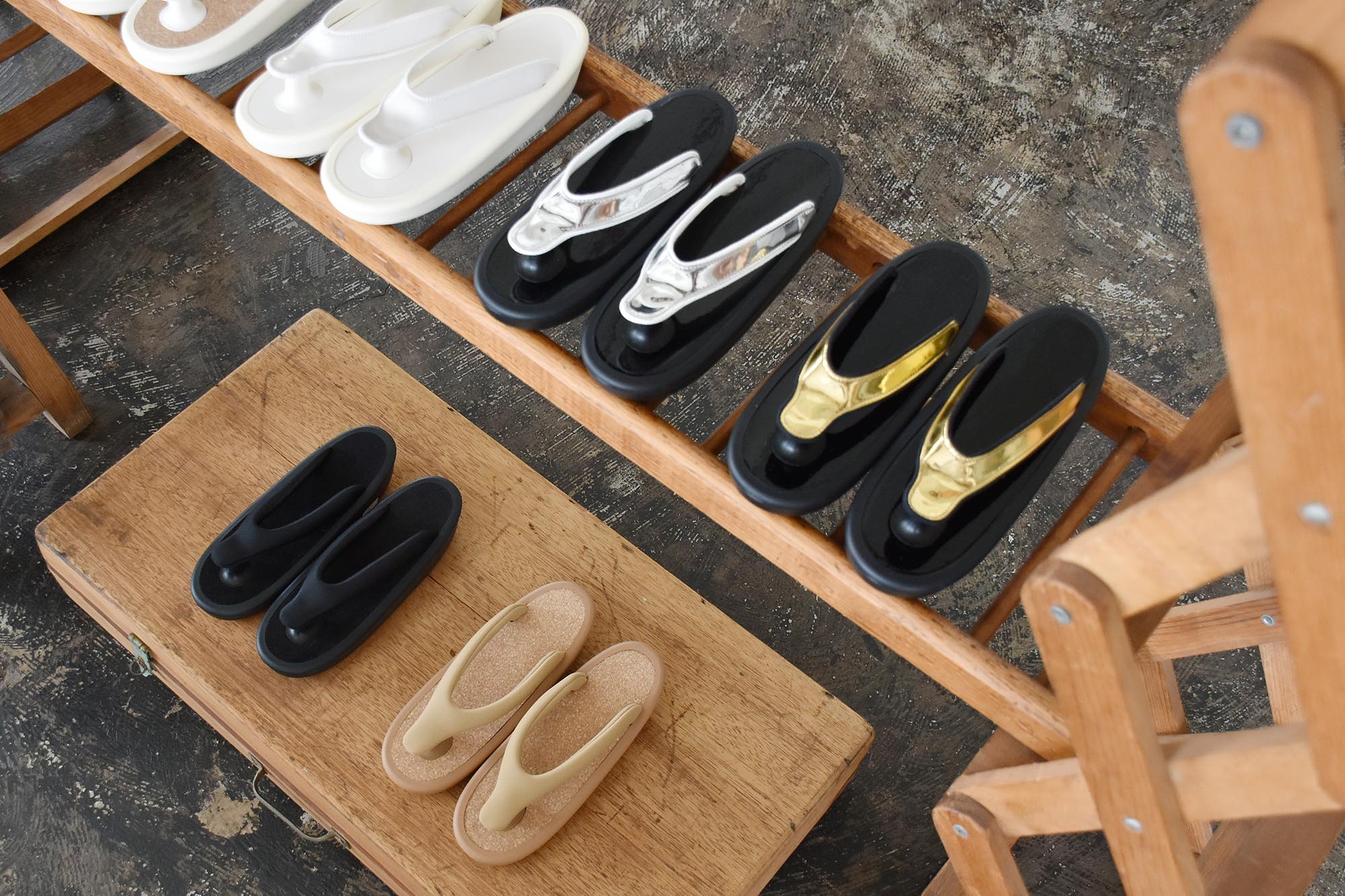 同じ構造を持つ履物にサンダルがあり、現代の日本はもとより、ハワイの海辺からインドの僧院にいたるまで、世界中で親しまれる存在となっています。