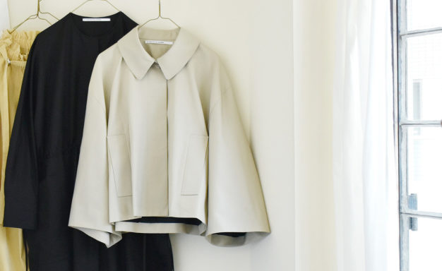 一枚仕立ての軽やかな素材なので、中にカットソーやニットを合わせて季節に応じて調整していただけます。