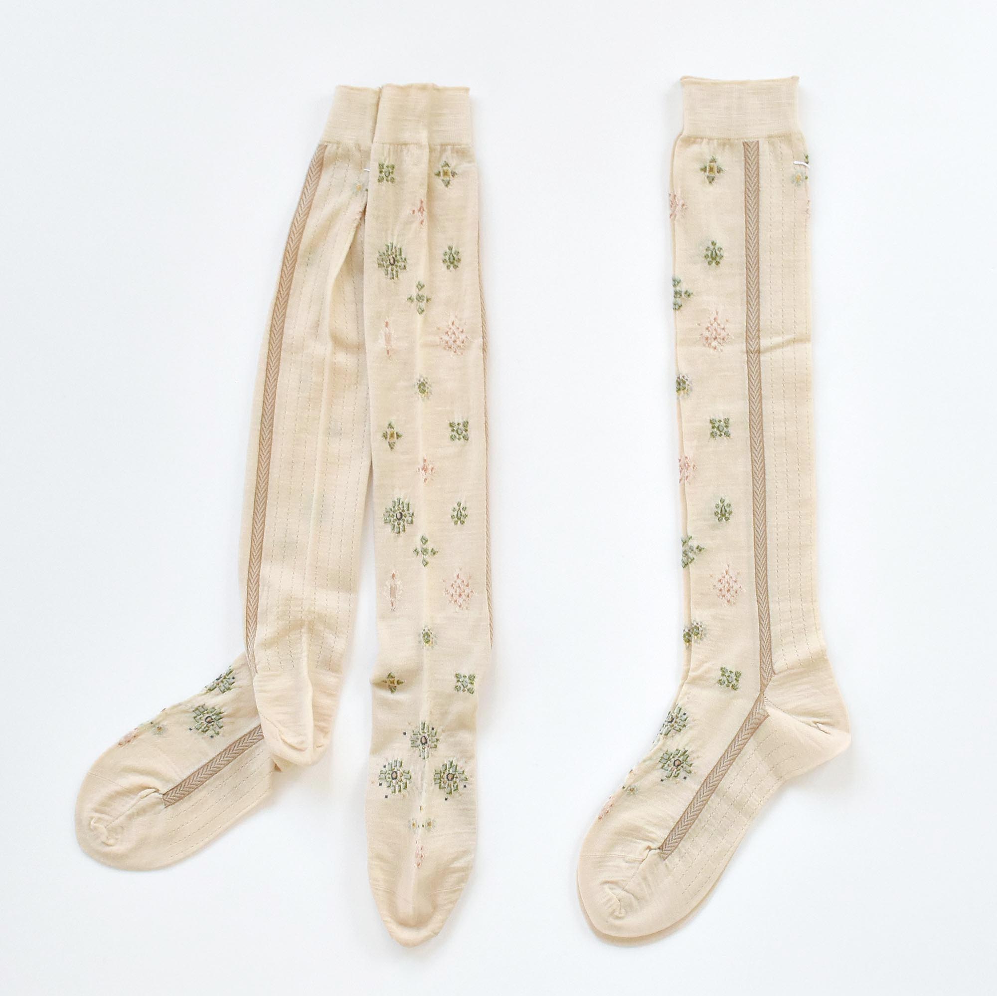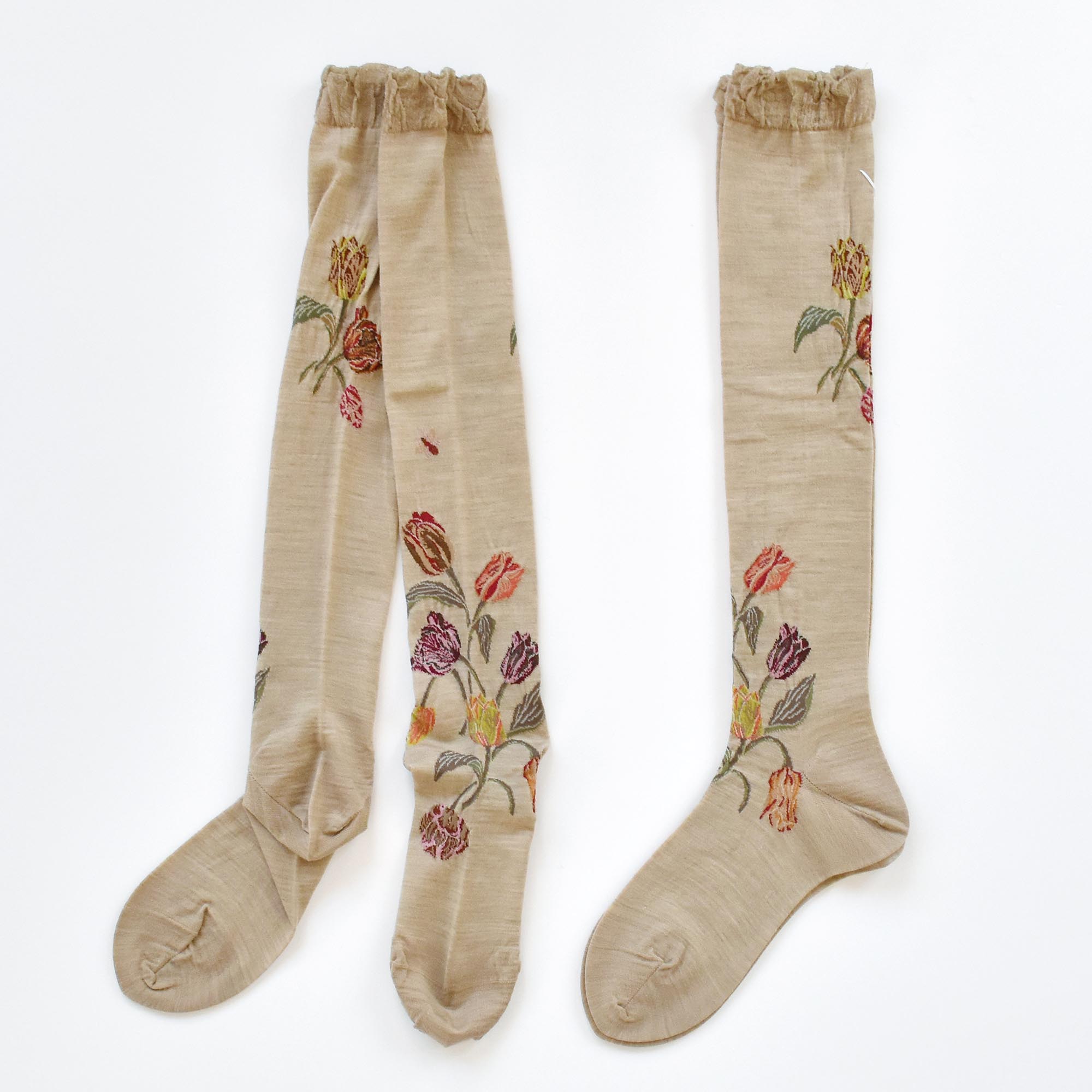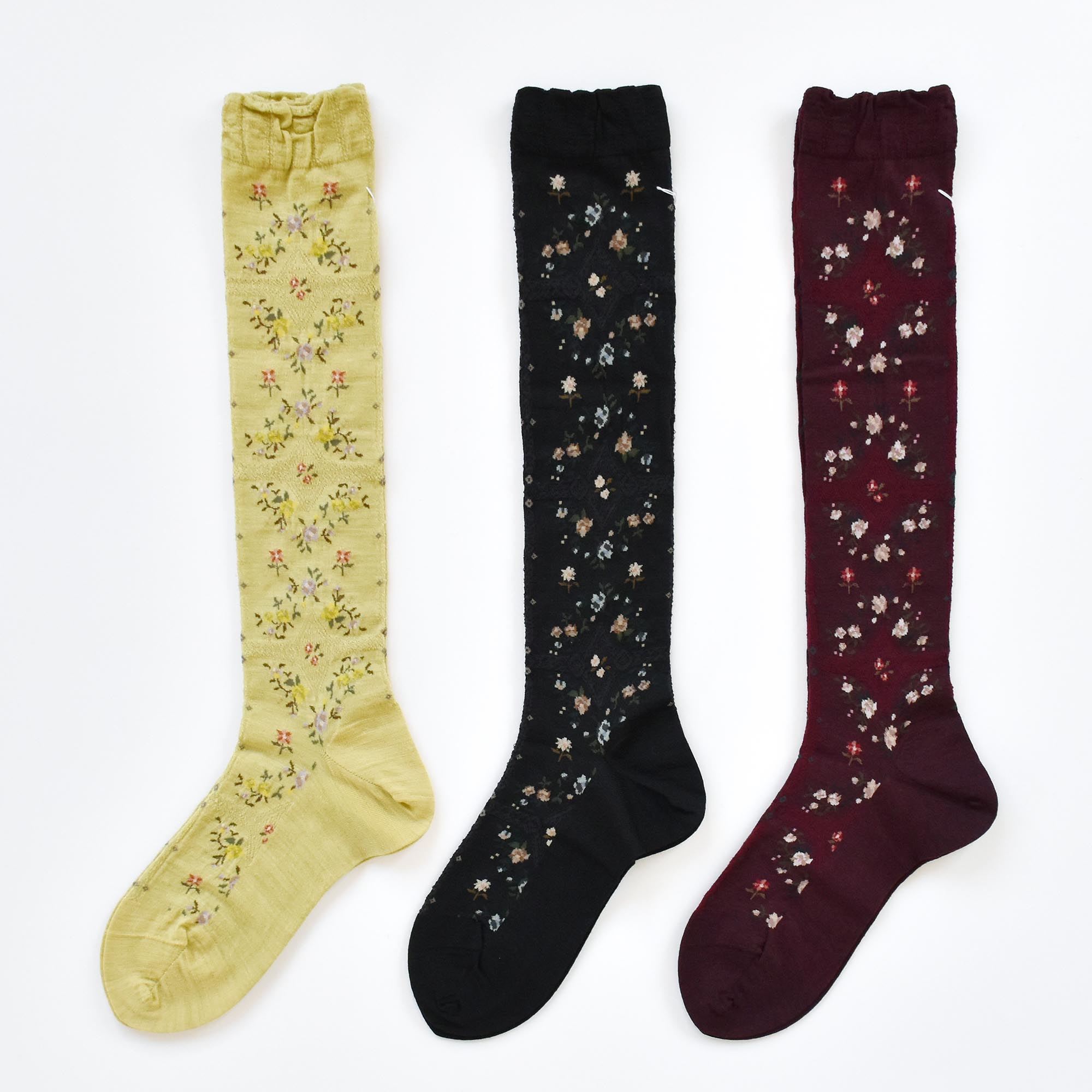 壁面にバラが咲いたような小花柄に心くすぐられるハイソックス。