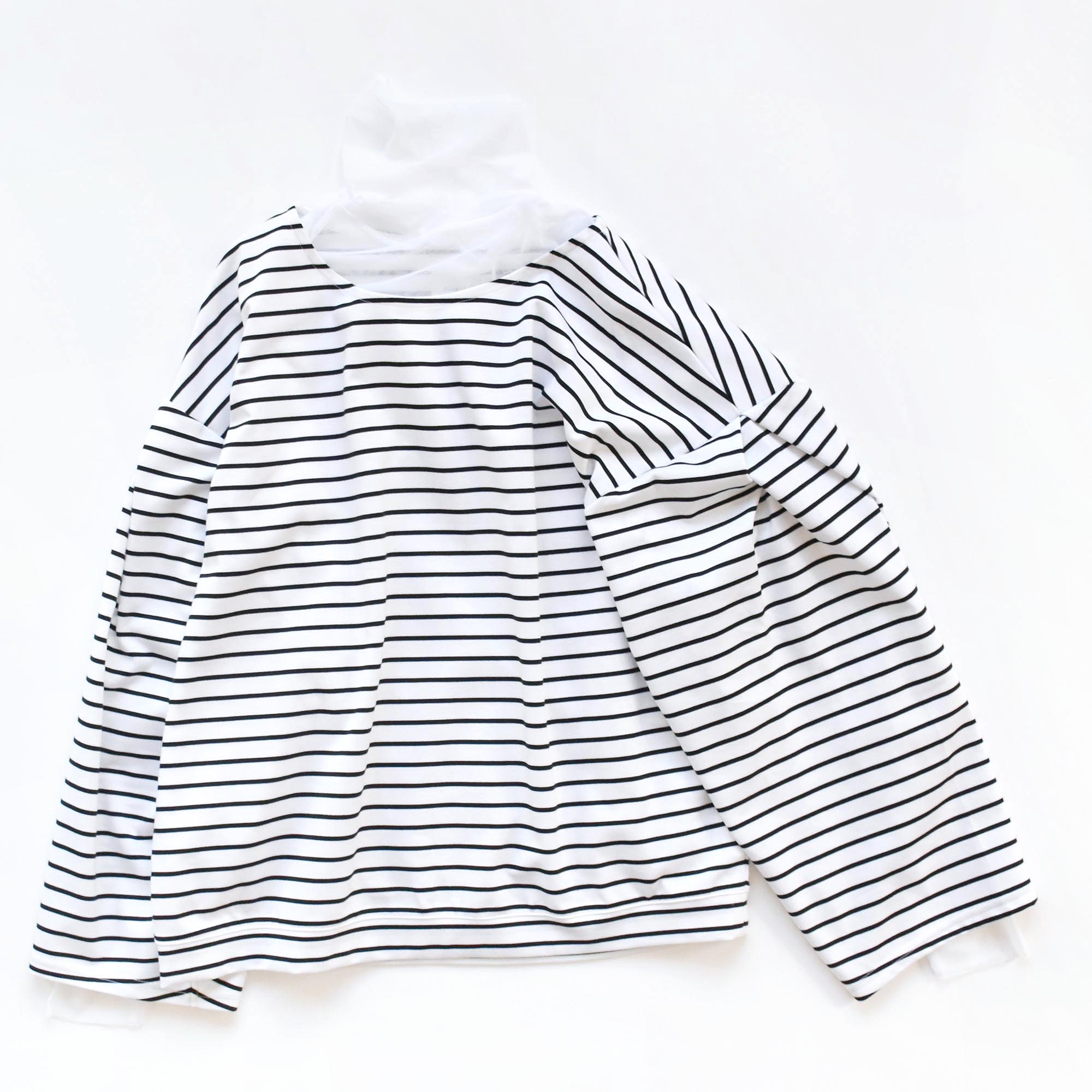 Gauze# / JOUET TUCKED SLEEVE BORDER PULLOVER(オフ-ブラック) ¥15,180 tax in