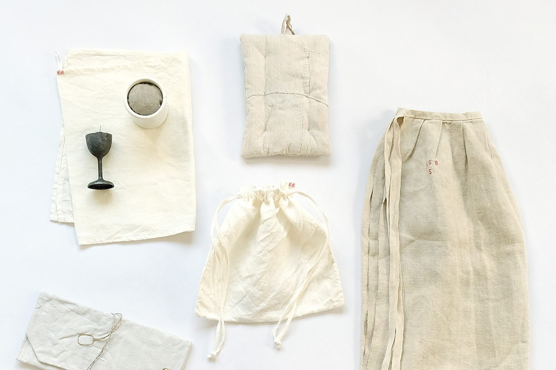 ヨーロッパの古い布(時折あたらしい布)を使い、日常使いのものに仕立てているuzakiさん。