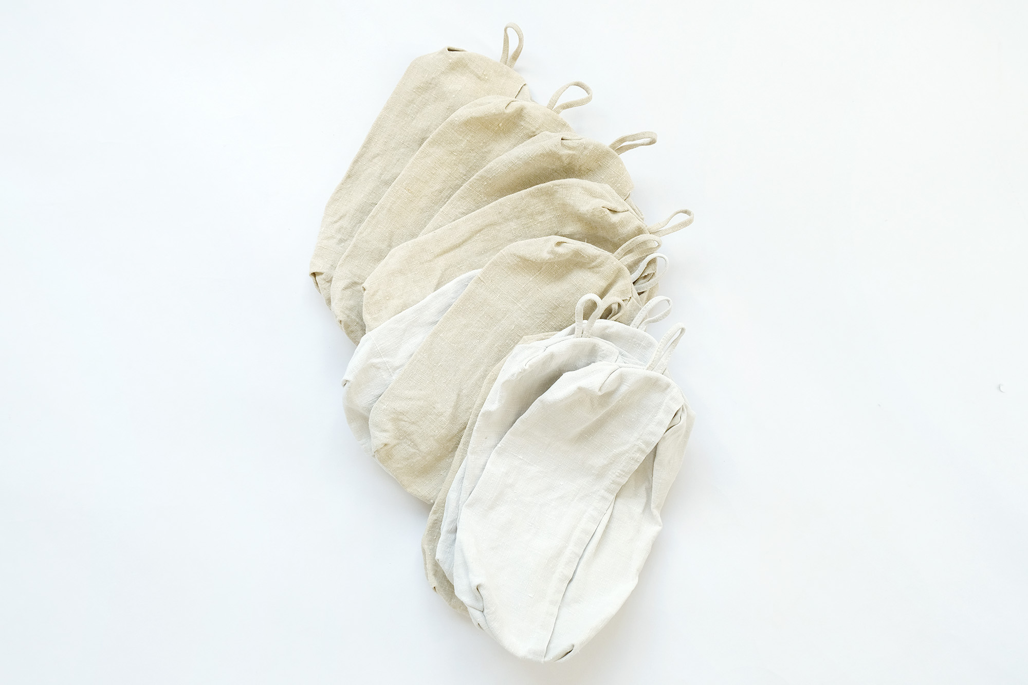 大きな布のパーテーション、ザブトン、マット、ポーチ、巾着、カゴバッグ、タオル、ティッシュケース、なべつかみ、エプロン、ピンクッション、などなど、豊かなラインナップをお届けいただいています。