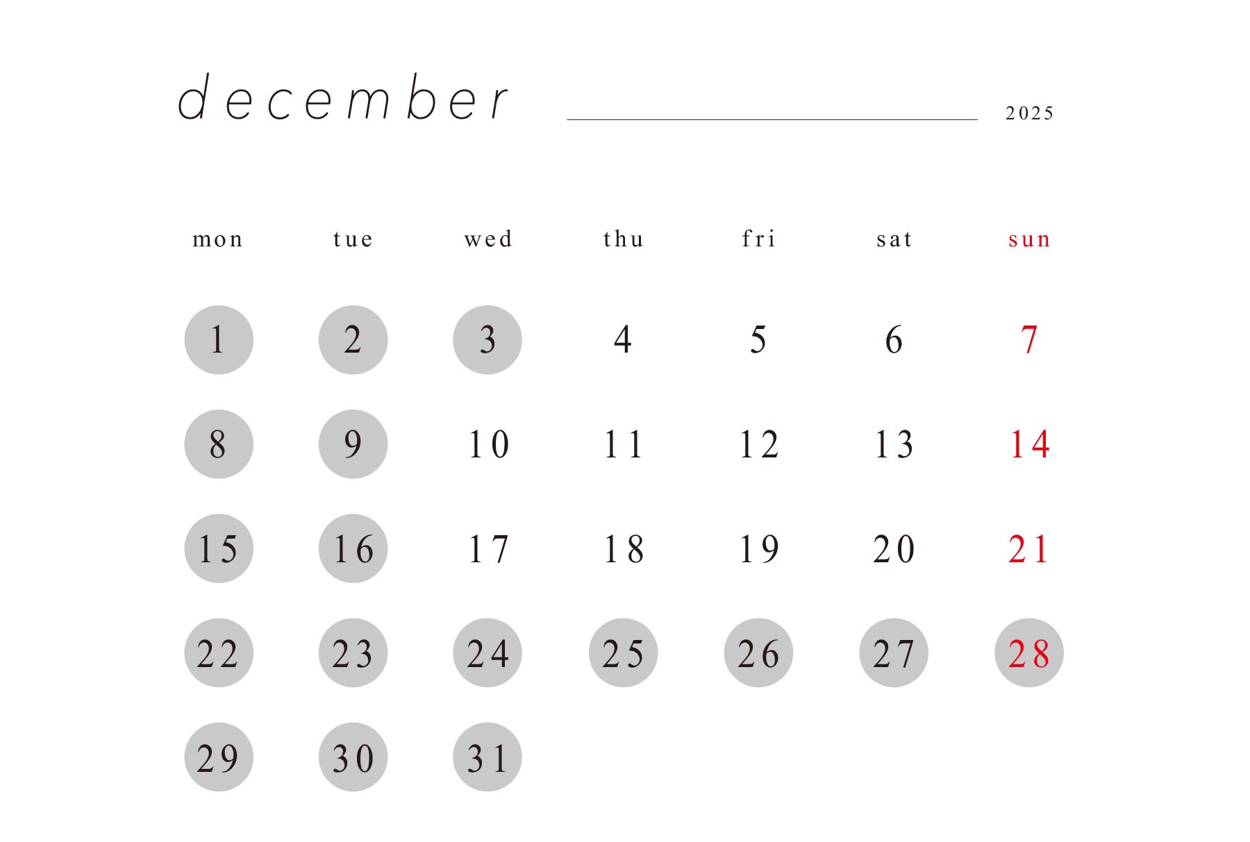 ※12/22(月)〜1/8(木)まで 冬季休業をいただきます。年始は1/9(金)からの営業です。