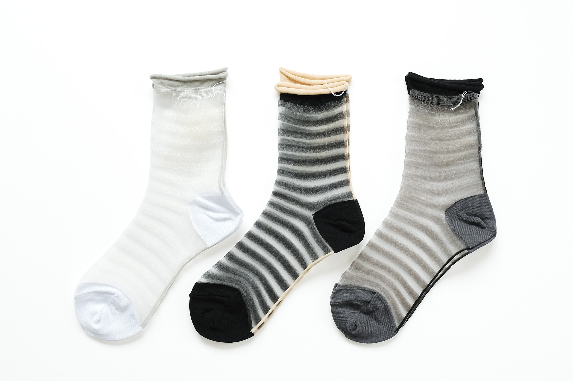 ソックス地はボーダーになっていて、履くと透け感が現れます。