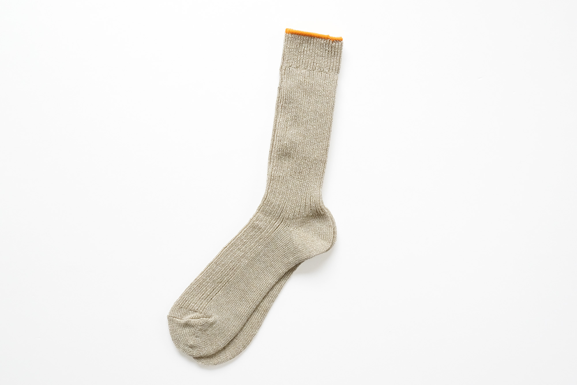 リブ仕立てのシンプルなラメ入りリネンソックス。