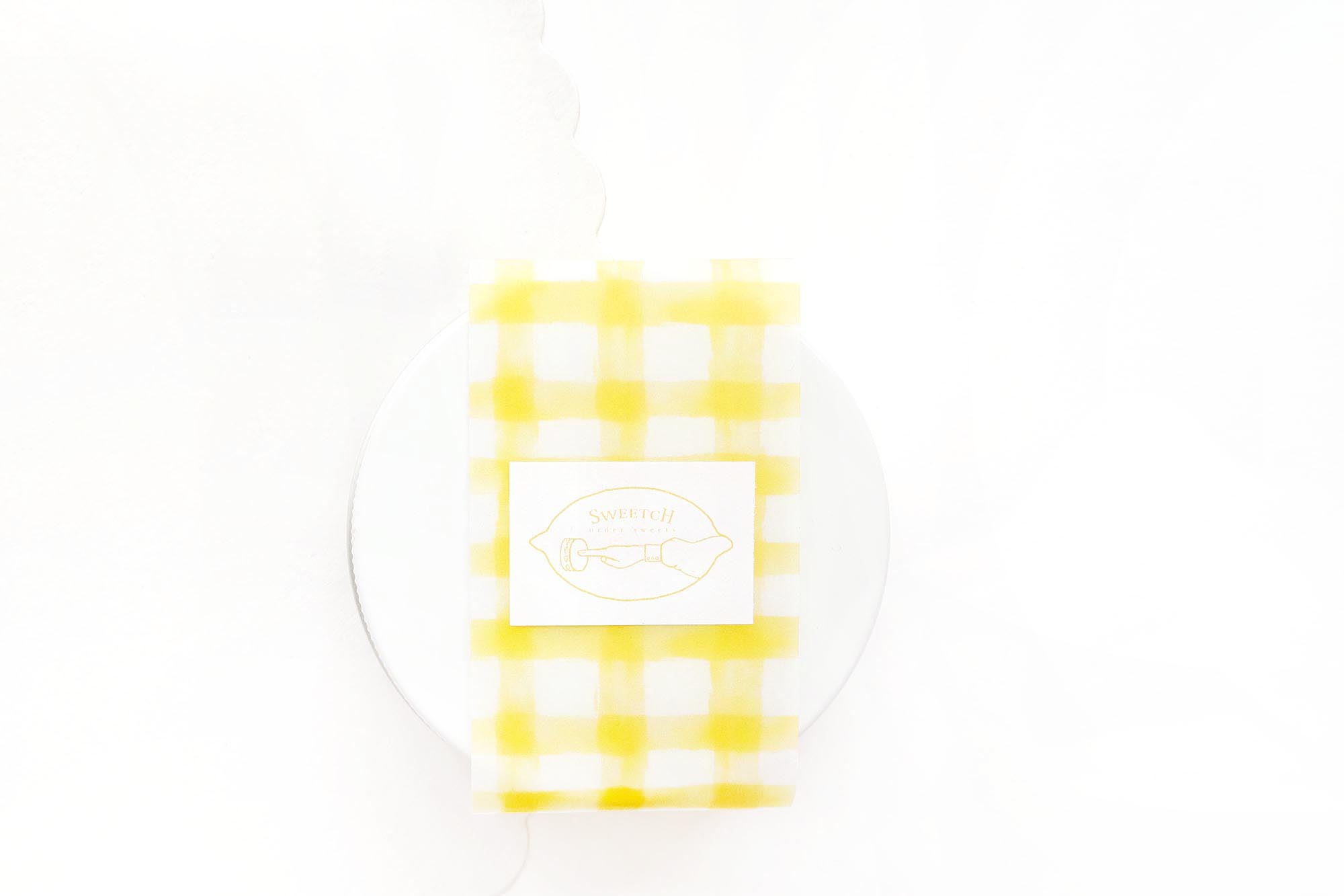 今年はレモン色のチェック柄パッケージを中心にご用意いただいています。